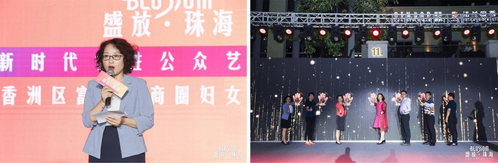 8月23日晚,“Blossom 盛放·珠海”新时代女性公众艺术创作暨富华里商圈妇联启动仪式如期举办。香洲区妇联主席黄芳、富华里商圈妇联主席宿海燕相继上台致辞,对“自立、自强、自信”价值观的诠释得到广泛认可。富华里商圈妇联正式成立,使其成为一股不可忽略的新兴巾帼力量 。珠海市妇联副主席刘建飞、珠海市慈善总会常务副会长王棱汸等悉数出席启动仪式。