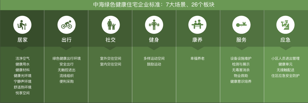“中海绿色健康住宅企业标准”,包括7大场景,26个板块,131项技术。